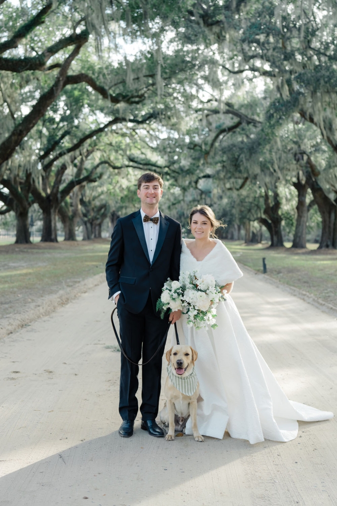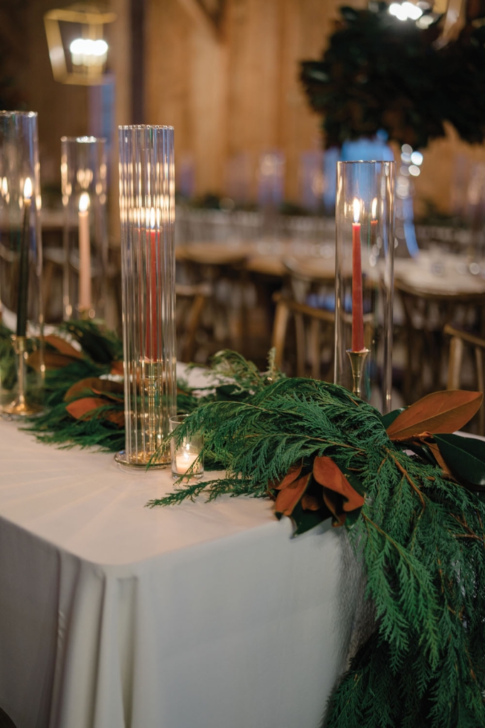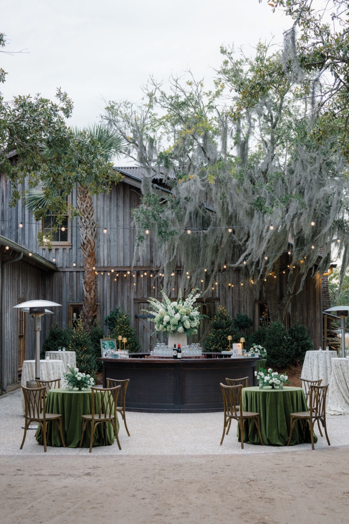 Having grown up visiting Charleston, the bride-to-be had long dreamed of a Boone Hall wedding, and the couple’s shared love of the water led them to the Cotton Dock. They romanticized a December wedding date, given the season’s propensity for bringing people together in celebrations of joy—not to mention the greenery, wreaths, and bows. Grace and Michael then teamed up with Grove Designs planner Emily Parham to unwrap their vision of a festive winter wedding.