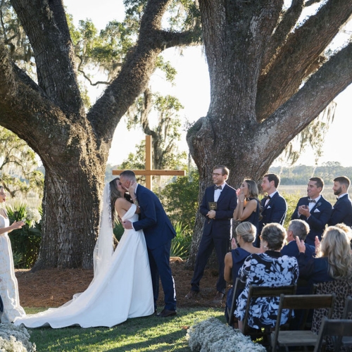 A Match Made in Heaven Classic white blooms, greenery, and wooden elements set off this stunning Charleston wedding under the oaks When it comes to love and marriage, couples who pair well...